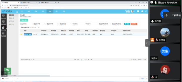 期末临近,为了切实做好线上考核工作,最大程度地降低疫情对本科教学质量的影响,近日公司安排工科数学分析信息大类课程组对在线考试的组织方式和相关平台进行调研。课程团队结合以前在线考试的经验和课程特点及需求,分别于11月30号和12月1号对智慧树和融智云在线考试平台进行了调研。