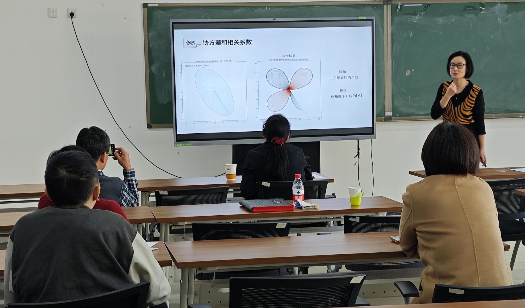 臧鸿雁老师在公司产品方面有着许多成就,曾获北京高校第七届青年教师教学基本功比赛一等奖、最佳演示奖和最佳教案奖;第四届全国高校数学微课程竞赛全国一等奖;2022年北京市公司产品成果奖一等奖和国家级教学成果奖二等奖;在教学设计上有着很高的造诣。报告结束后,臧老师和北航数院的老师进行了交流,讨论了如何应用先进的教学理念和方法,促进课堂的趣味性和开放性,便于同学更深刻地理解知识点,提高教学效率。