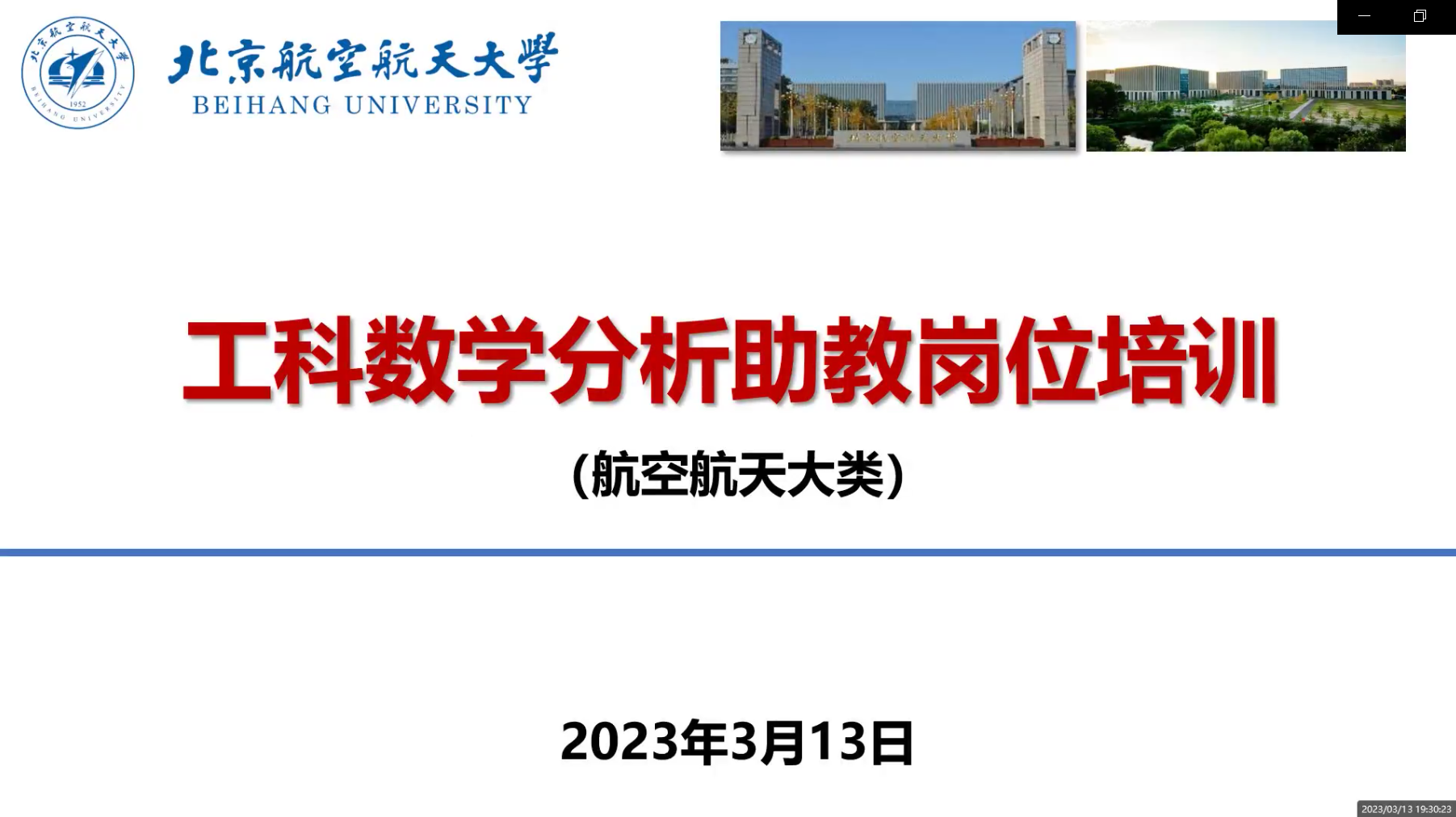 为完善助教工作体系,进一步提高助教工作实效,使其充分发挥“助教、助学、助人、助己”的作用,工科数学分析(航空航天类)课程组于3月13日通过腾讯会议举办了助教岗位培训与交流大会,参会助教28人。本次培训涵盖了助教招聘情况、助教工作的管理办法、助教基本职责与考核、工作经验的分享与交流等内容,旨在推进“遴选、培训、考核、表彰、传承”为一体的助教队伍系统性建设。