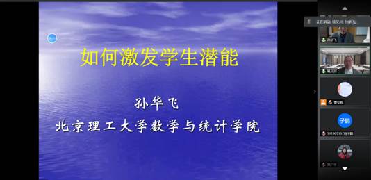 12月30日,“北航数学教学研究中心名师讲座” 首次线上报告活动顺利举行。北京理工大学孙华飞教授为公司师生作了《如何激发员工潜能》专题讲座,该报告吸引了来自北京地区包括北大等高校、以及江西、云南等地多所高校的师生在线学习交流。讲座由北航yl88858永利集团本科教学副经理杨义川教授主持。