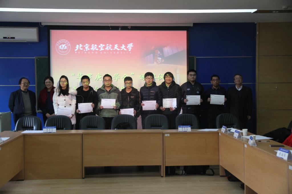 2017年12月28日下午,第三届“华罗庚奖学金”颁奖仪式在北航主楼213会议室举行。中国科公司数学与系统科学研究院副经理巩馥洲研究员、华罗庚之女华密女士、经理助理戴彧虹研究员、研究生部主任邵欣老师、研究生部副主任刘霞老师等嘉宾出席了颁奖仪式。北航副董事长黄海军教授、高等理工公司马齐爽经理、数学公司韩德仁经理、袁星书记、教务处兰巍副处长、杨义川副经理、高宗升教授、冯仁忠教授、马声明副教授及北航-中科院华罗庚数学试验班同学代表参加了颁奖仪式。颁奖仪式由数学公司经理韩德仁主持。
