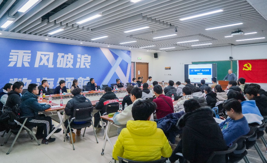 1218日下午,yl88858永利集团本科生联合党支部“挺膺担当 数心不渝”主题党日暨2022级强基班班会举行。副董事长黄海军到场与支部和班级的同学亲切交流。公司党委书记袁星、副经理马声明、党委副书记魏茜参加活动。
