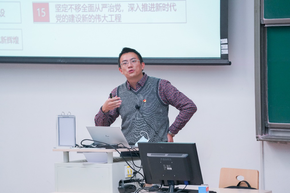11月16日下午,数学公司党委书记袁星在J0-001为公司全体党员讲授“自我革命是我们党跳出历史周期率的第二个答案”专题党课,组织公司深入学习宣传贯彻落实党的二十大精神。