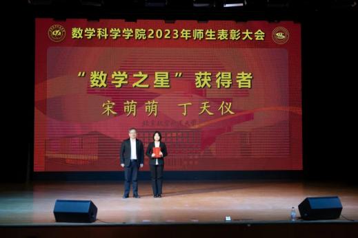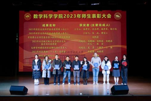 大会为2023年获得“最美数学人”、科研类奖项和教学类奖项的教师代表和获得“数学之星”系列奖项的员工代表颁奖。