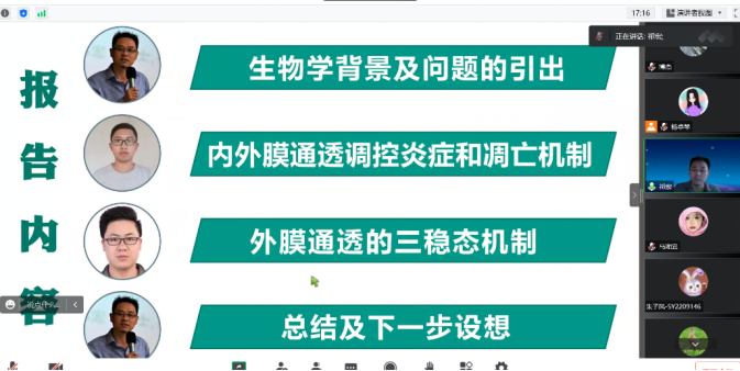 2022年11月16日下午,应用数学系杨卓琴老师邀请山西大学复杂系统研究所祁宏副教授,进行了有关“线粒体膜通透性调控细胞命运的数学建模”的线上学术报告。报告进行了两个多小时,公司近30名教师和研究生参会。祁宏老师详细地介绍了研究成果的生物背景、研究方法、创新结果及未来工作设想等,并且非常耐心地回答了同学们提出的各种学术问题。