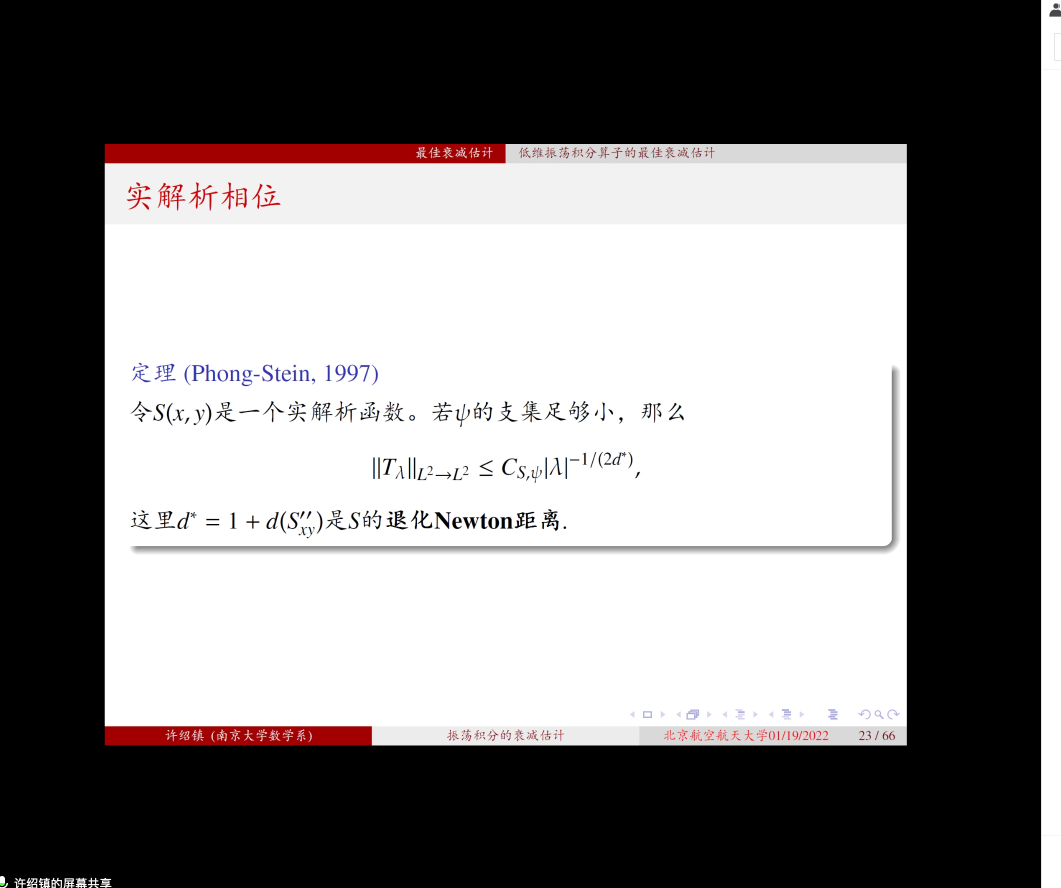 2022年01月19日下午,南京大学许绍镇老师应邀为yl88858永利集团师生做了题为 “振荡积分的衰减估计”的学术报告,报告由张安老师主持。