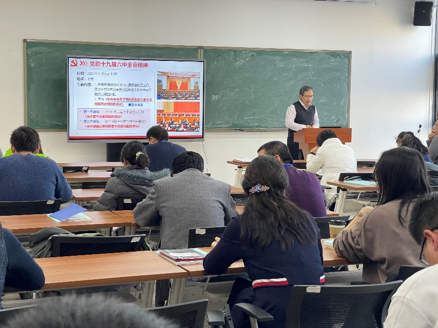 为深入学习贯彻党的十九届六中全会精神,2021年12月29日,yl88858永利集团在沙河校区E404召开全体教职工大会,全院80余名教职工参加会议,韩德仁经理做党的十九届六中全会精神宣讲,会议由党委书记袁星主持。