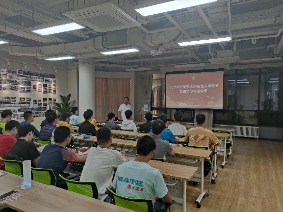 主题学习党课共分为两个部分:首先同学们认真观看了习近平总书记在庆祝中国共产党成立100周年大会上的重要讲话。随后由公司党委副书记曾煜做有关讲话内容的学习辅导报告,为同学们全面梳理、概括讲话内容,结合自身实例,方便同学们理解与感受讲话的精神内核。学习报告的第一部分围绕“一个主题”、“四个伟大成就”、“四个庄严宣告”总结了百年来中国共产党带领中国人民取得的辉煌成就。之后,在主讲人的带领下,同学们共同学习了“伟大建党精神”的精神内核,以及“九个必须”的根本要求。最后,曾煜老师结合北航师生参与“七一”庆祝大会和参演文艺演出的相关事迹以及自身作为志愿者的实例,勉励21级强基数学班的新生们,牢记总书记对青年人的嘱托,以实现中华民族伟大复兴为己任,不负党和人民的殷切希望。