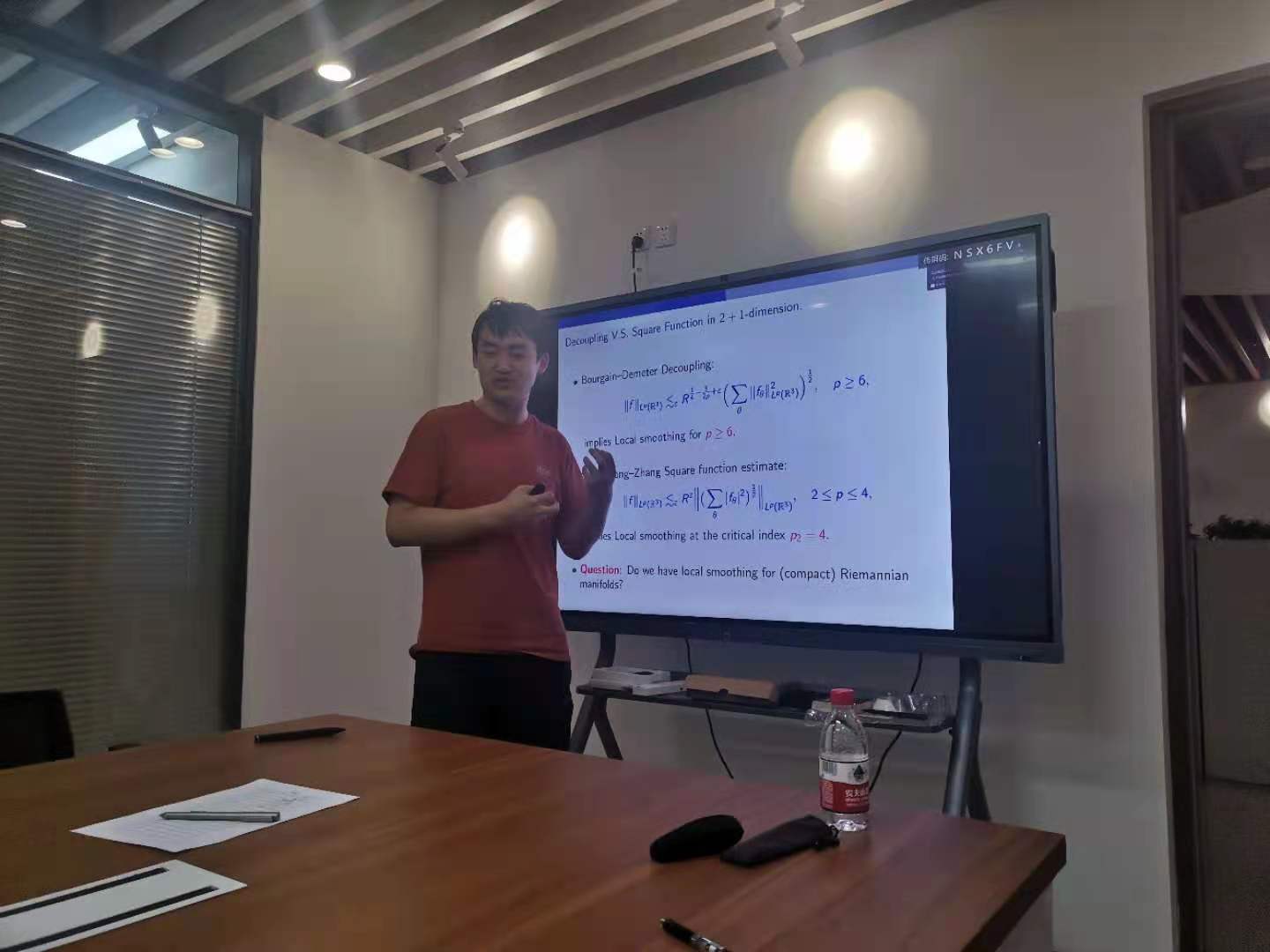 Local smoothing猜想是调和分析和PDE中的一个重要猜想,是由调和分析大师Christopher D. Sogge于1991年提出的,这个猜想和调和分析中的其他几个重要猜想,如Bochner–Riesz mean, Fourier restriction 和Kakeya–Nikodym 猜想都有些紧密的联系。直到最近,2D的情形才由Guth-Wang-Zhang给出肯定的回答。Xi和合作者通过研究变系数的sharp平方函数估计,进一步结合Mockenhaupt–Seeger–Sogge 1992的经典工具,最终得到了2+1维数空间上的满足cinematic曲率条件的Fourier积分算子的局部光滑估计,从而拓展了GWZ的结果。