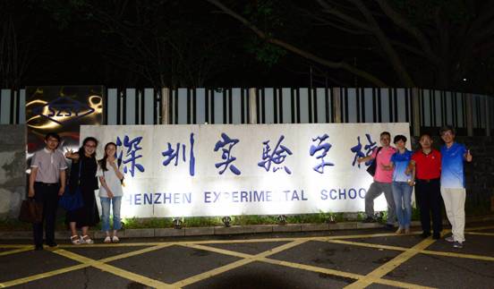 | 上图为员工马永红(左二)、阳鑫(左一)陪同招生老师前往深圳各中学协助招生宣传 |