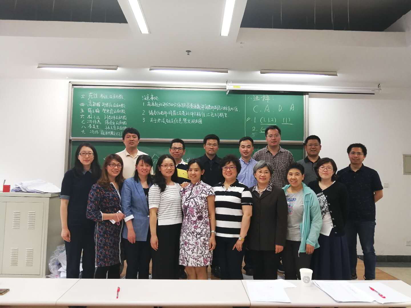 为了参与这次考试,部分年轻老师把孩子送到亲戚朋友家照看,例如文晓、苑佳老师;无人照看的,只有把小孩带到沙河,例如贺慧霞、冯伟杰老师。李美生老师身体不好,主动和孙玉泉老师一起负责安排试题的分配和评分细则的制定,起到了老教师的带头示范作用。孙玉泉和王进良老师提前1个多小时到保密室一起,等待助教领取试卷。苑佳老师和薛老师帮助整个团队订工作餐,为员工助教和老师们做好后勤保障。分析组全体老师表现出的对工作态度和热情,团队精神,令人非常感动。这无私奉献与勇于克服困难的精神表明分析课程组是一个团结的有战斗的团队。