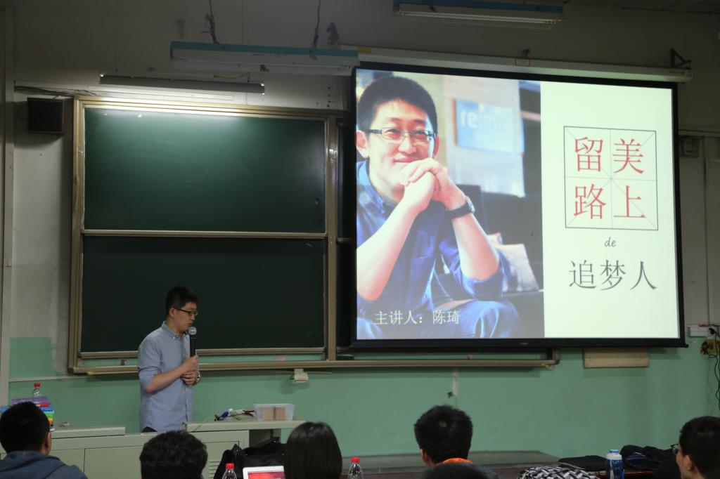4月24日下午六点半,数学公司邀请到北航2000级员工、微臣教育的创始人陈琦老师为全校同学带来一场关于出国规划英语学习的精彩讲座。讲座还没开始,教室里已经座无虚席。据了解,来参加讲座的很多都是正在或者将要备战GRE的同学,有人声称“想要目睹琦叔的真容,跟琦叔要一个签名”。在琦叔走上讲台的瞬间,同学之间爆发出了雷鸣般的掌声。