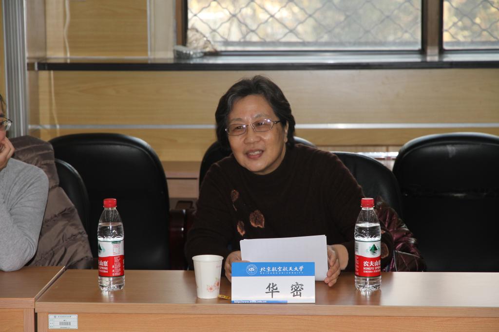 颁奖仪式上,北航数学公司经理郑志勇教授首先致辞,他先是对所有与会嘉宾的到来表示热烈的欢迎,对华密女士和中科院数公司对北航华罗庚班的关心和重视表示衷心的感谢。他指出,北航作为一所工科强校,要大力加强对基础学科的人才培养,华罗庚班的目标正是要培养具有坚实数理基础的高素质创新人才和具有解决重大应用数学问题潜质的复合型创新人才,希望今后可以继续与中科院加强合作。最后,他借用华罗庚先生“勤能补拙是良训,一分辛苦一分才”的诗句表达了对华罗庚班同学们的期待,希望同学们刻苦钻研,成为像华罗庚先生一样的人才。北航教务处处长王祖林教授在致辞中首先对北航华罗庚班多届员工被录取到巴黎高师等众多国内外名校的傲人成绩表示了高度的赞扬,接着他向获得2016年华罗庚奖的同学们表示祝贺与鼓励,他强调,希望获奖的同学们在今后学习的过程中戒骄戒躁、不辍努力,把华罗庚先生脚踏实地、勤奋向学的学习品质一直传承下去。中国科公司数公司副经理巩馥洲研究员对北航华罗庚班成立七年来取得的成果表示了充分的肯定,他指出北航华罗庚班是众多华罗庚班中最优秀的班集体之一,中科院数公司的多名院士与教授参与到华罗庚班本科生核心专业课程的授课以及科研项目指导中,效果十分显著,中科院今后会继续加强与北航华罗庚班的合作与联系,进一步提高北航数学学科的实力,同时欢迎华罗庚班同学们今后到中科院数公司深造。最后,他向华罗庚班同学们提出了几点要求和期望,希望同学们能全面发展,不仅在数学方面建树非凡,在文学造诣、工程技术等更多更广的领域内都能够有所突破。中科院数公司经理助理戴彧虹研究员宣读了“2016年华罗庚奖学金”获奖名单,华密女士与中科院数公司、北航的各位老师一同为获奖员工颁发证书。