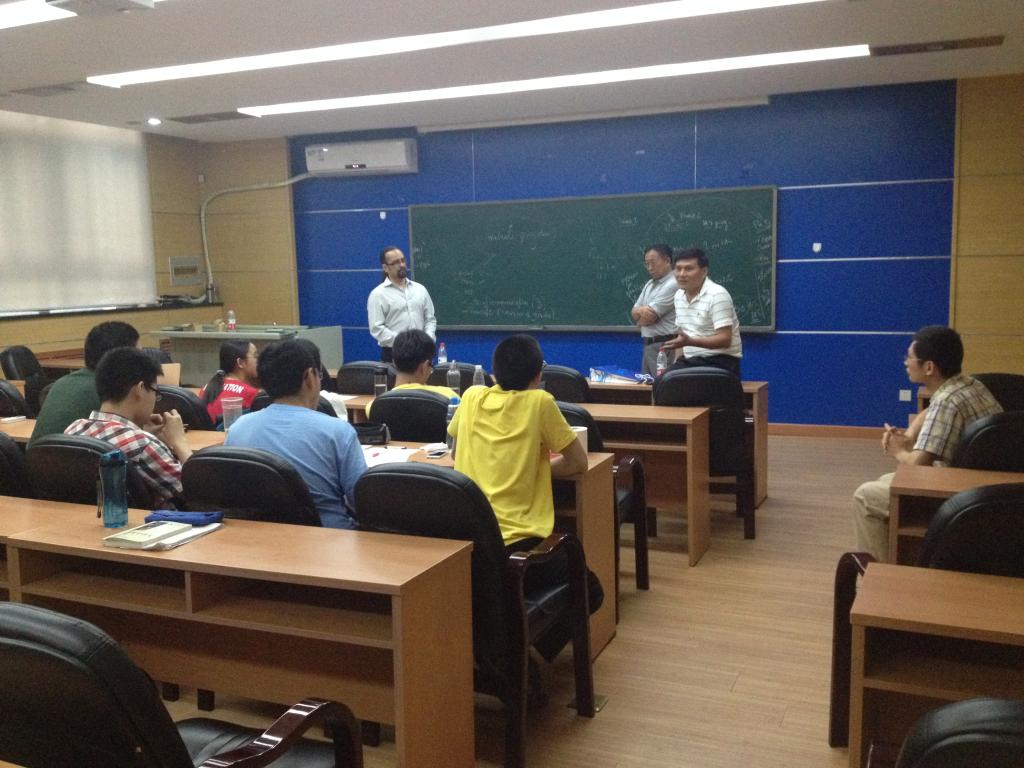 随后,Paulo Lima-Filho教授、Jianxin Zhou教授以及美国泛美德克萨斯大学数学系终身教授冯兆生与华罗庚班的员工们展开了愉快的交流。同学们就去美国留学以及北航和Texas A&M 3+1+1 项目向三位教授询问,并与教授们交换了意见。三位教授也针对员工们的问题做出了详细的解释,对同学们的帮助很大。