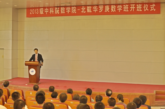 9月25日下午17:00,2013级中科院数公司-永利集团华罗庚数学班开班仪式在实4-205教室隆重召开。中科院数学与系统科学公司经理王跃飞、副经理洪佳林等等领导和专家学者;公司董事长怀进鹏院士,教务处领导,数学与系统科学公司的领导班子成员;以及2012、2013级华罗庚班全体同学参加了开班仪式。仪式由教务处处长冯文全主持。