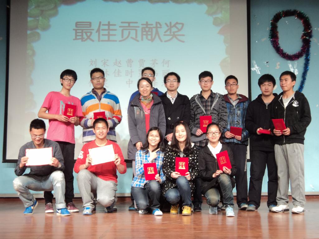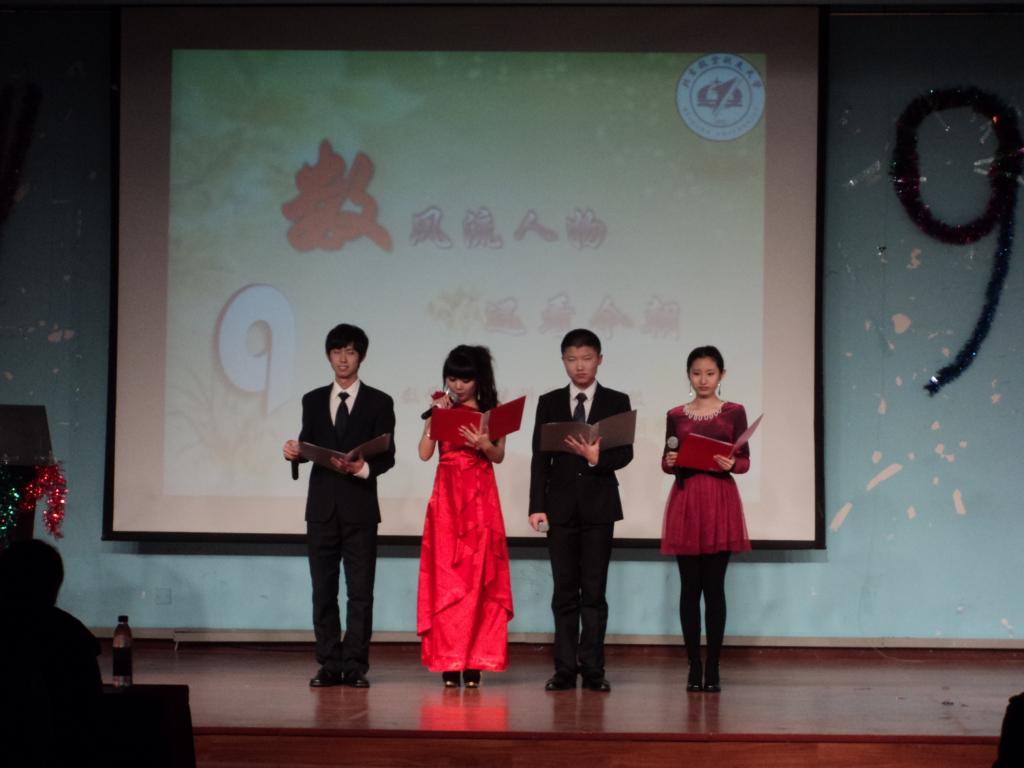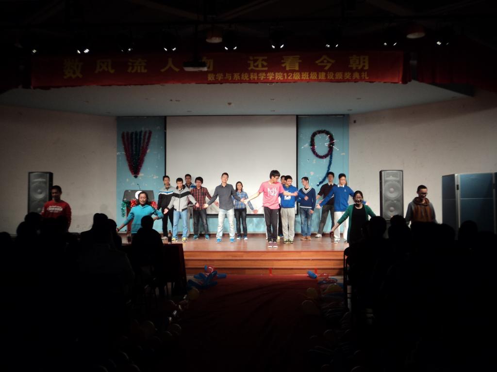 3月30日,公司12级班级建设颁奖典礼在沙河校区多功能厅举行。到场的有公司分党委书记李红捷老师,公司分党委副书记王菲老师,120921班班主任严夺魁老师,1209的辅导员张文浩和12级全体同学。颁奖典礼的主题是“数风流人物,还看今朝”,总结了在过去一个学期中,1209大班学习、班级工作等各方面的先进人物。活动以120921班的舞蹈“Together”开场,李红捷书记在舞蹈之后亲自为获得“最佳贡献奖”的同学颁奖,他们在过去的一个学期中,承担了大量的集体工作,为大班建设作出了突出的贡献。接着颁奖人颁发了“学爸学妈”“单科最高”等一系列学习奖项,在23班朗诵的《数的诗》之后,活动开始了对大班各类特色奖项的表彰。其间的“歌词曲目大反串”掀起了典礼的第一波高潮,21班的班主任严夺魁老师亲自上台放歌,使气氛更加热烈。在随后的一系列的奖项中穿插着22班的相声《露一手》、24班的小品《考试》、23班的《天下无贼》的片段以及华罗庚班带来的歌曲《菊花台》等精彩的节目,典礼的颁奖环节在轻松愉悦的氛围中结束。之后,辅导员张文浩做了简短的活动总结。长达两个小时的颁奖典礼是1209大班成立以来的总结,活动不仅给12级同学带来了深深地感触,也是大家难忘的回忆,一系列的奖励和表彰为大班发现了各有所长的先进代表,也为同学树立了榜样。 活动在最后一个节目歌舞剧《老男孩》的歌声中圆满结束。