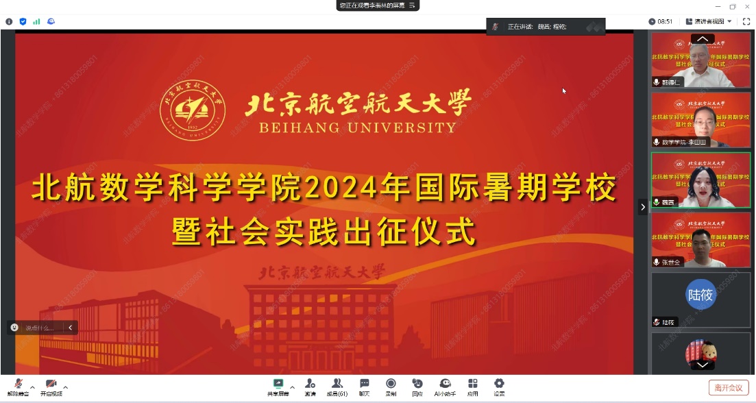 7月19日晚,yl88858永利集团2024年国际暑期公司暨社会实践出征仪式于线上会议平台进行。公司经理韩德仁、党委副书记魏茜,暑期公司带队教师代表张世金、李田田、陆筱,社会实践队指导教师代表程乾,国际暑期公司和社会实践队员工代表等近60人参加仪式。本次出征仪式由魏茜主持。