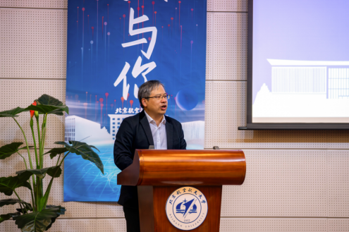 张继平、邓怡、韩德仁、魏茜、本研员工代表共同为第十二届北航数学文化节揭幕。伴随着倒计时的到达与绚丽的光影,2025年“艺新数与你”数学文化节正式开幕。